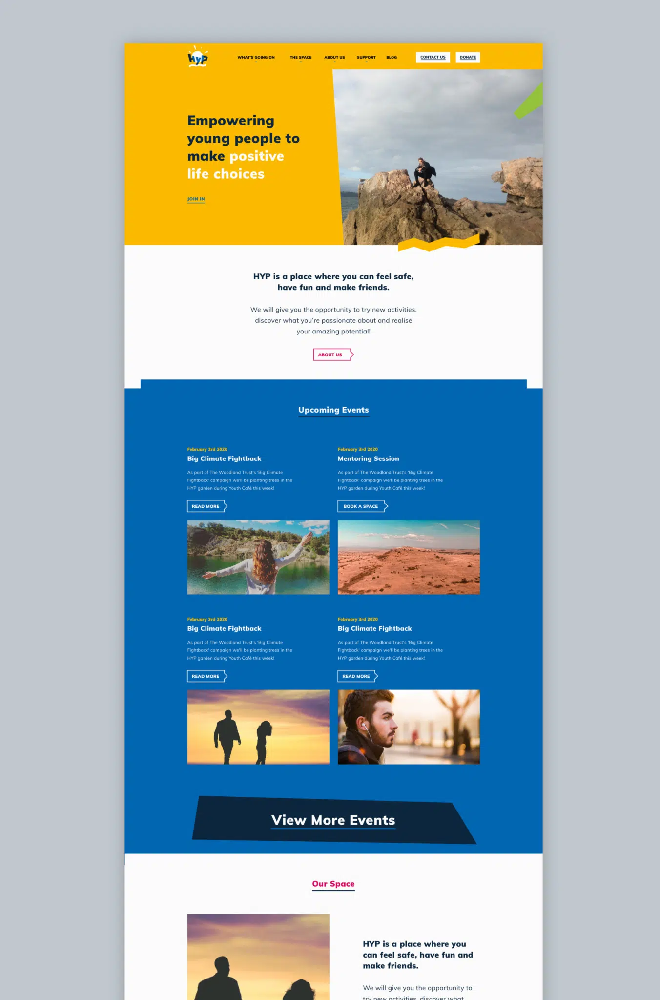 A vibrant identity and modern content managed website for a local charity which empowers young people.